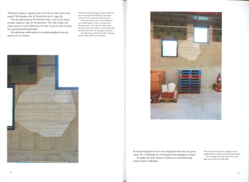 Two years ago, Dutch visual artist Bart Lodewijks received a curious phone call from someone wanting to know if he would be interested in making his signature chalk drawings in Belgium’s newest prison. He arrived to find it is nothing but a construction site, so the first drawings appeared along the street where the prison would be located. He got acquainted with the locals – a landlord, the parcel delivery guy, an orange tomcat – and spoke with residents about the imminent changes in their neighbourhood. More than a year later, the first inmates arrived and Lodewijks ventured inside the prison with them. This book documents the project in its strange and wonderful entirety.