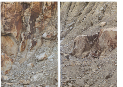 Invited to exhibit on the Mauvoisin Dam in Switzerland, Camille Llobet created a photographic series capturing a glacial landscape in transition. Shot on and around the moraines of the Mer de Glace, the images reveal a layered world of rock, ice, and sediment - remnants of a largely vanished glacier. Through diptychs that often exclude the sky and horizon, Llobet invites viewers to re-experience the scale and materiality of this grey-toned terrain. The book also features an in-depth interview with Jean-Paul Felley, in which Llobet discusses her working process, collaboration with geomorphologists, and the choreography of mountain landscapes in flux.